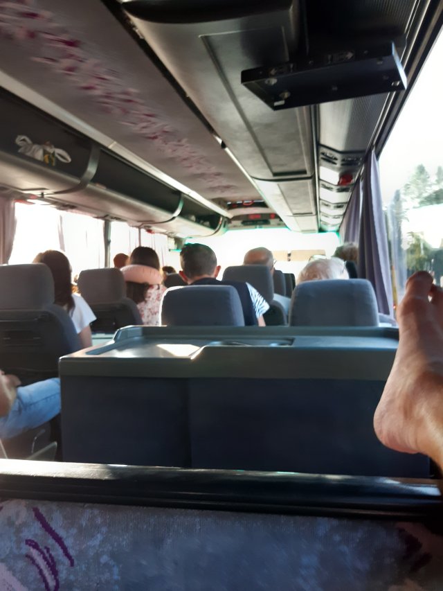 Bussi saapui 15 ennen lähtöä. Olin siirtänyt pyörän lähemmäksi laituria. Ystäväni jäi odottamaan pyörän viereen kun itse menin jonon viereen oviaukon lähelle. Päin livahtamaan 5 sisälle. Sain varattua itselleni 2 paikkaa toisen oviaukon edestä. Pyörän luona odottava ystäväni joutui lähtemään joten jäin yksin odottelemaan vuoroani että saan pyörän lastiruumaan. Suurin osa ihmisistä oli jo saanut laukkunsa tavaratilaan. Päätin mennä näyttäytymään miehelle joka laittoi tavaroita sisälle.