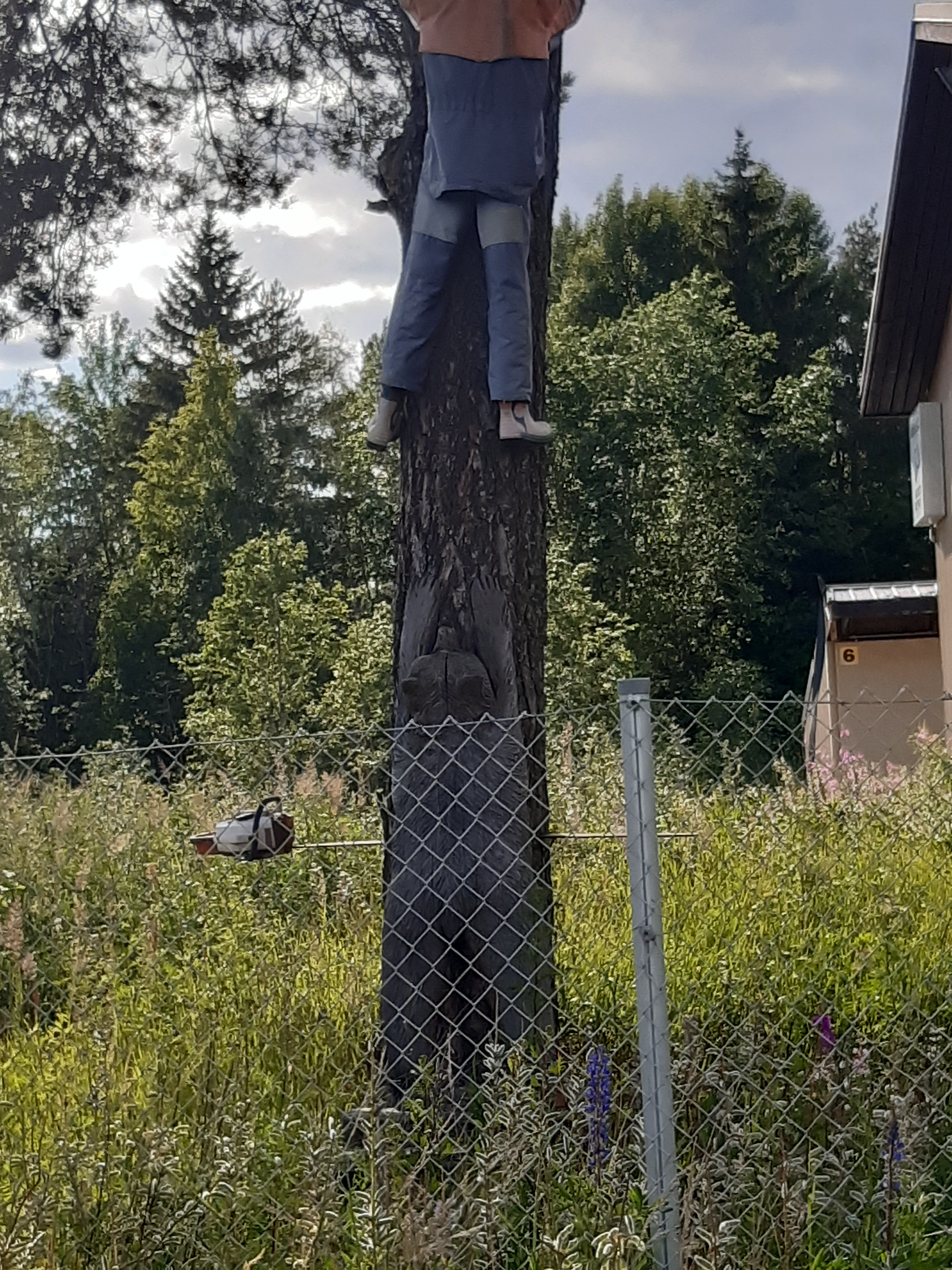 Laittaessani telttaa kasaan huomasin miehen kävelevän metsässä, metsätien toisella puolella lähellä puhelin anteenia. Seurasin sivusilmällä mitä ukkeli touhusi. Hänellä oli marjankeräin kädessä joten asia oli sillä selvä, hän oli mustikassa 8 aamulla.