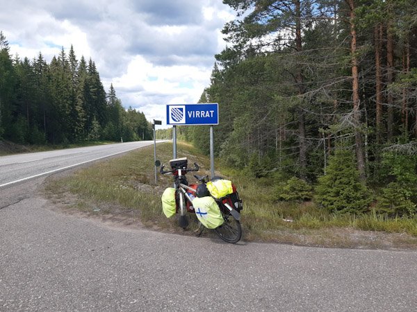 Virroille oli leiripaikasta matkaa 70 kilometriä. Tie on aika tasaista, loivat nousut sekä tietyöt antoivat oman mausteen matkan tekoon. Muutama rivakampi nousu tuli matkalla myös vastaan. Suunnilleen puolessa välissä matkaa Virroille minulta hajosi patteripaketti millä lataan ajaessa puhelinta. Patterit saavat virran etudynamosta mistä lähtee sitten diodin läpi piuha puhelimeen. Löysin vian illalla, eräs liitos oli hajonnut piuhoista