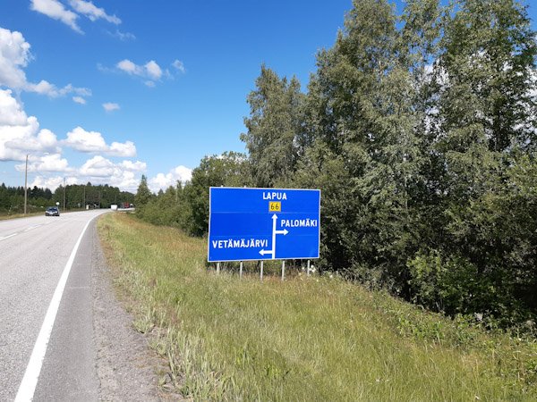 Seuraava etappi oli Lapua. Aurinko paahtoi lämpimästi, liikenne oli välillä aika kovaa joten tarkkana sai olla. Matkalla tuli yksi matkapyöräilijä pariskunta vastaan. Mies kysyi pysähtymättä tien toiselta puolelta reittinäni. Huusin hänelle että Ouluun olen menossa. Pariskunta oli jo ohitseni kun mies huusi pää vinossa Utsjoki-hanko. Sen enempää emme ehtineet juttelemaan. Päätin käydä ostamassa iltaruuat valmiiksi kun pääsin perille. Huomasin sopivasti ison ostoskeskuksen saapuessani kaupunkiin. Mennessäni kauppaan minun piti etsiä ensin pullopalautus koska olin löytänyt muutaman tölkin tien varresta. Samalla katsoin saisinko vedet samasta paikasta.