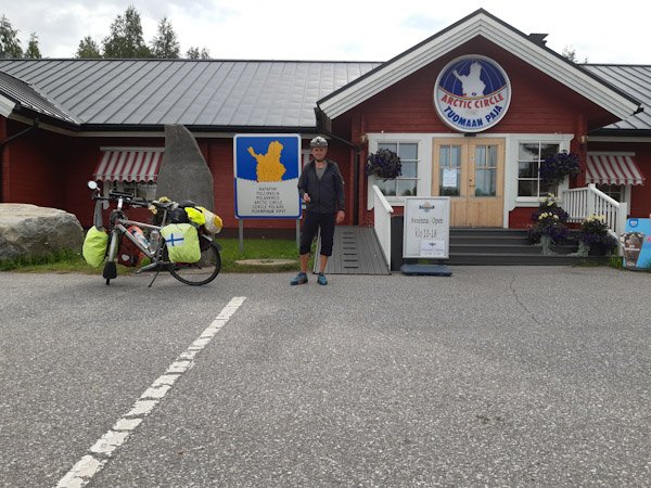 Seuraavaksi suuntasin huoltamolla hakemaan vettä. Olin ehtinyt täyttää yhden 1.5L pullon kun paikalle ajoi toinen matkapyöräilijä. Kyselin minne hän oli matkalla ja mistä hän oli lähtenyt liikenteeseen. Mies kertoi että oli tulossa Rovaniemen suunnasta ja käsivarteen oli matkalla. Mahdollisesti tulisi takaisin päin Ruotsin puolta. Ensin hänen pitäisi käydä kaupassa.