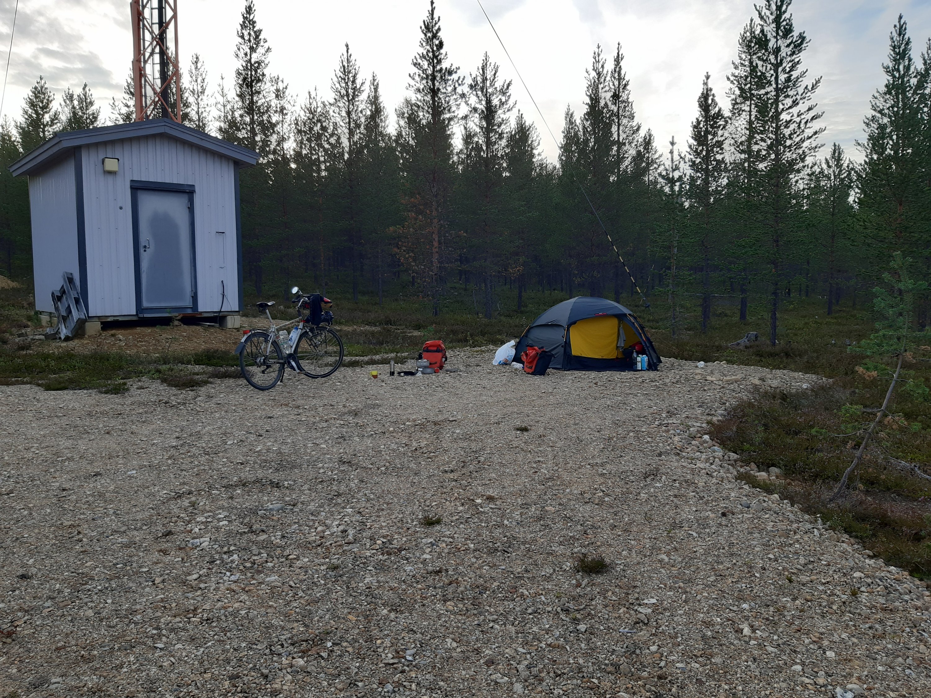 Ajoin vielä 17 km ennen kuin aloin katselemaan leiriä.sellainen löytyi puhelin maston vierestä.