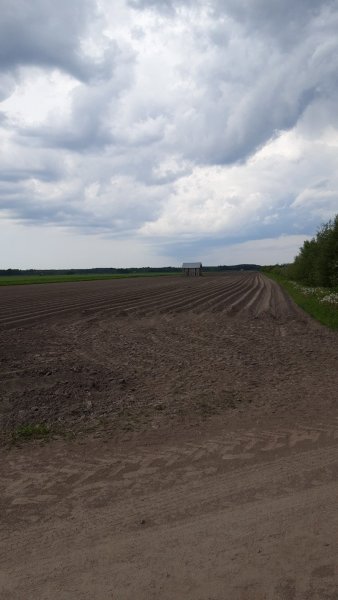 Pysähdyin puoleksi tunniksi pellonlaitaan odottamaan erään saderintaman menoa. Pilvet liikkuivat hitaasti vetäen perässään utuista sadeverhoa. Katselin pellonlaidassa puolenkilometrin perunavakoja jotka näyttivät häviävän kaukaisuuteen. Pellolla oli kaksi latoa, toinen oli puolessa välissä, toinen näkyi pienenä laatikkona kaukaisuudessa. Muutama pisara tippu kuivan mullan päälle tehden siihen pienen veitsen montun Olin haistavinani nenässäni kostean mullan tuoksun. Ehkä vain kuvittelin, luoja tietää.