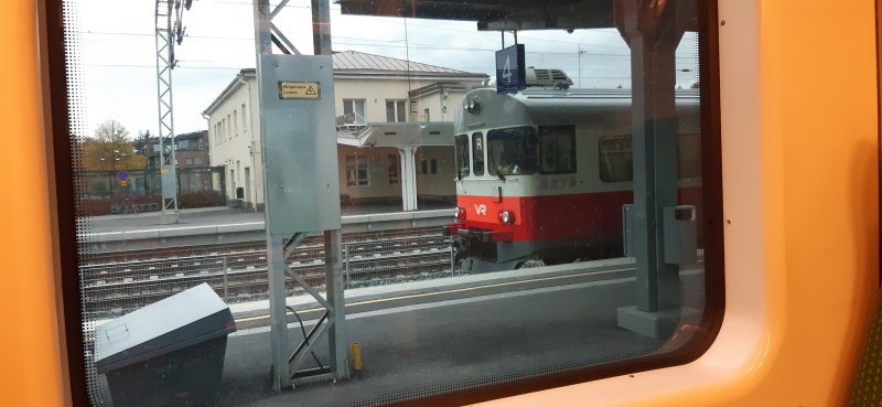 Kun juna lopulta saapui , en ensin meinannut uskoa silmiäni. Vanhan ajan paikallisjuna. Kirosin kuin turkkilainen koska oviaukko oli kapea, siinä oli kaksi rappusta jotka olivat vielä jyrkässä kulmassa. Eikö VR saa noita vanhoja Junia pois liikenteestä vai mikä siinäkin mättää.