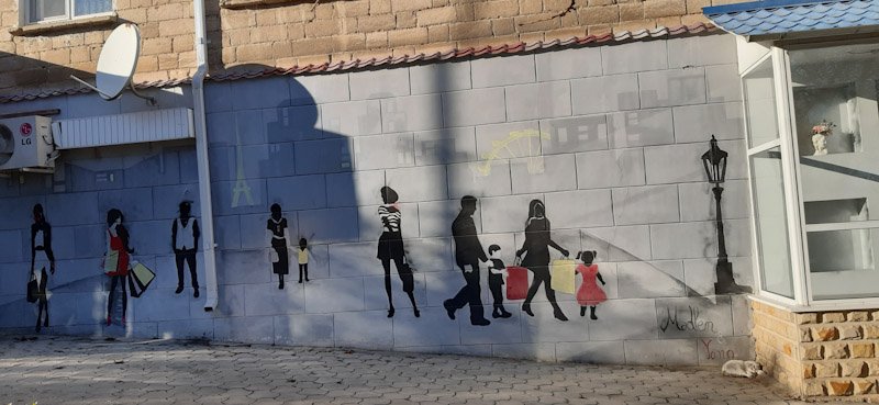 Pysähdyimme käymään teellä, tai oikeastaan otin kaakaon ja hän kahvin. Koska yhteistä kieltä ei ollut käytimme kääntäjää. Hän kertoi että oli ollut 4 vuotta poliisina . Sain häneltä muistoksi maan lipun joka oli hänellä autossa.
