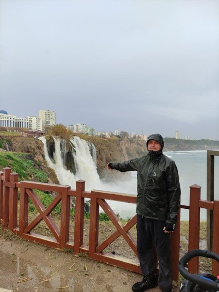 Iltapäivästä sade taukosi sen verran että pääsimme lähtemään. Lähdimme ajamaan pyörillä keskustan läpi. Ajoimme välillä raitiovaunun kiskojen luona että pääsimme liikkumaan nopeammin. Seurasimme rannikon tuntumassa olevaa pyörätietä joka vei suoraan putouksen luokse. Sade oli alkanut puolessa välissä matkaa. Olimme pysähtyneet välillä pitämään sadetta puun alle. Toisen kerran pysähdyin.me autokatoksen alle.