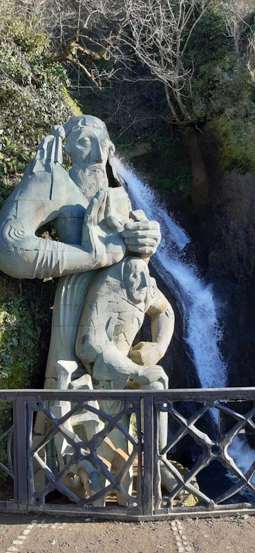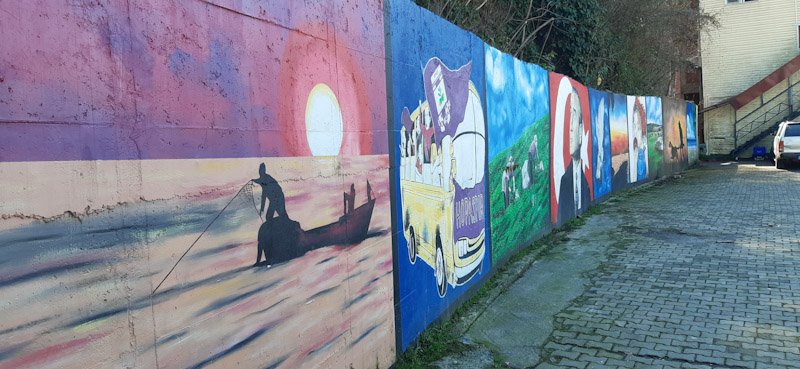 Batumiin oli matkaa 14 km rajalta. Pysähdyin ottamaan valokuvia eräästä vesiputouksesta. Putouksen lähellä oli iso patsas , sen vieressä oli iso kivinen kyltti missä oli tekstiä.siinä luki että ”path through Georgia”