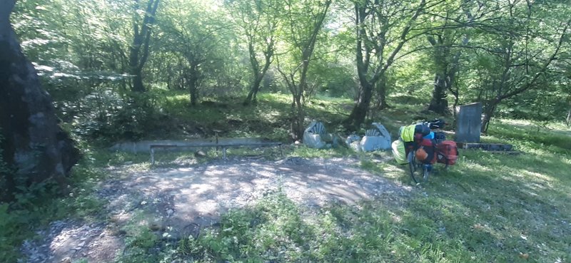 Pysähdyimme 4 aikaan kun löysimme leiripaikan. Alue on vanha levähdys sekä vedenotto paikka. Sen on nykyään piilossa tieltä kulkijoilta. Metsä on kasvanut sen eteen, pöydästä ja tuoleista ei ole jäljellä enään kuin rauta tolpat.