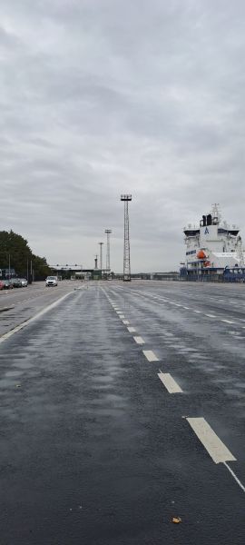 Alueella ei ollut kuin muutama auto kun saavuin sinne. Lippuluukku oli jo auki joten jäin odottamaan vuoroani autojen perään. Katsellessani aidan toiselle puolelle näin miehen joka työnsi sähköpotkulautaa . Se oli lastattu täyteen tavaraa. Sii ä oli matkalaukku alimpana, sitten oli pehmeäkassi jonka päällä olo pahvilaatikko. Katselin kun hän saapui C portista sisälle ja työnsi muina miehinä lastinsa kaikkien autojen ohi luukulle. Pian hän paineli jo lastausalueen luona. Itse oli vielä jonossa.
