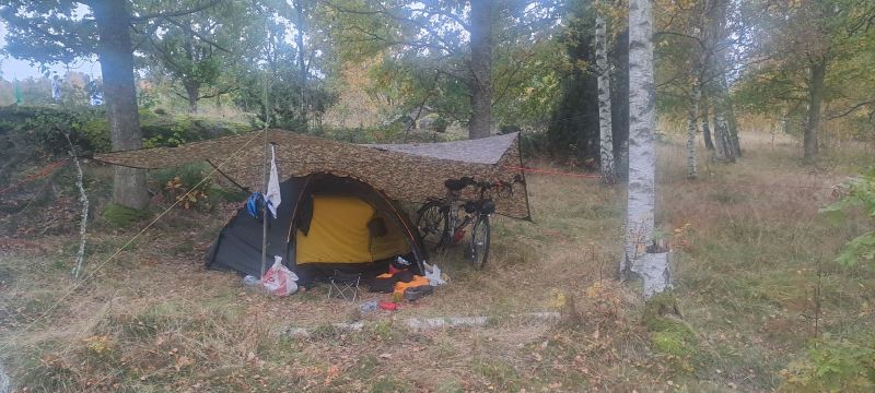 Illemmalla eräs nainen pyörähti metsikössä mutta sitä en tiedä näkikö hän leiripaikan.